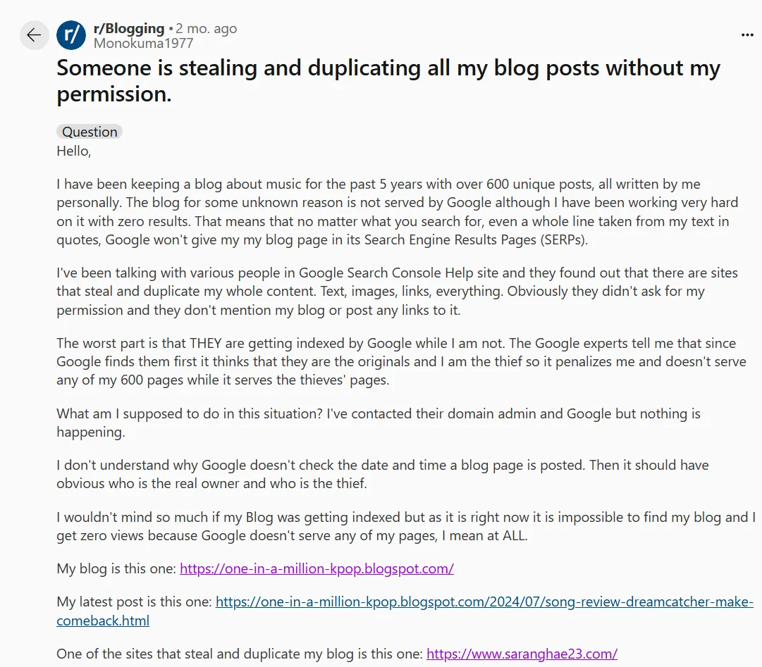 经历过bing k站的,没想到google也有这一出,写了多年的blog内容还被盗。