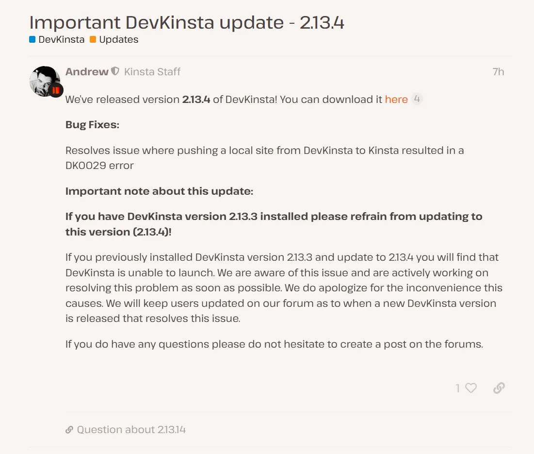 devkinsta更新故障