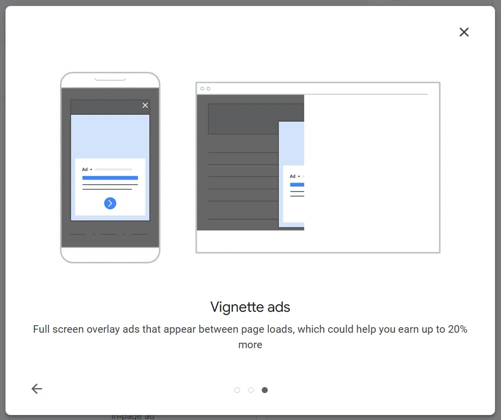 vignette ads12 September 2024 / 1 min read现代弹窗广告,说实话广告样式很毒瘤,但app上早就见怪不怪了,web的大正规联盟都是后面才跟进。要触发该广告需要一次交互,即页面跳转,那你的访客至少该点点其他页面。来了就跑或者纯纯单页都不行。