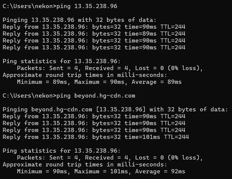 beyond.hg-cdn.com第二步:测试CDN节点延迟